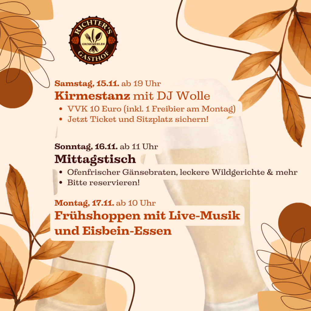 Wir begrüßen seit über 130 Jahren und in der fünften Generation unsere Gäste, die sich über traditionelle Hausmannskost, eine gemütliche Atmosphäre und freundlichen Service in Richters Gasthof Großkmehlen freuen.